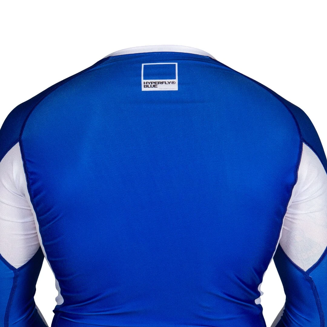 Introducing The Hyperfly Blue collection. Featuring our signature shade—the classic Hyperfly Blue—this rash guard takes visual inspiration from the mesmerizing depth of International Klein Blue, developed by the visionary French artist Yves Klein. This iconic hue has been celebrated in art movements around the world, and now, it finds its home on the canvas of combat.