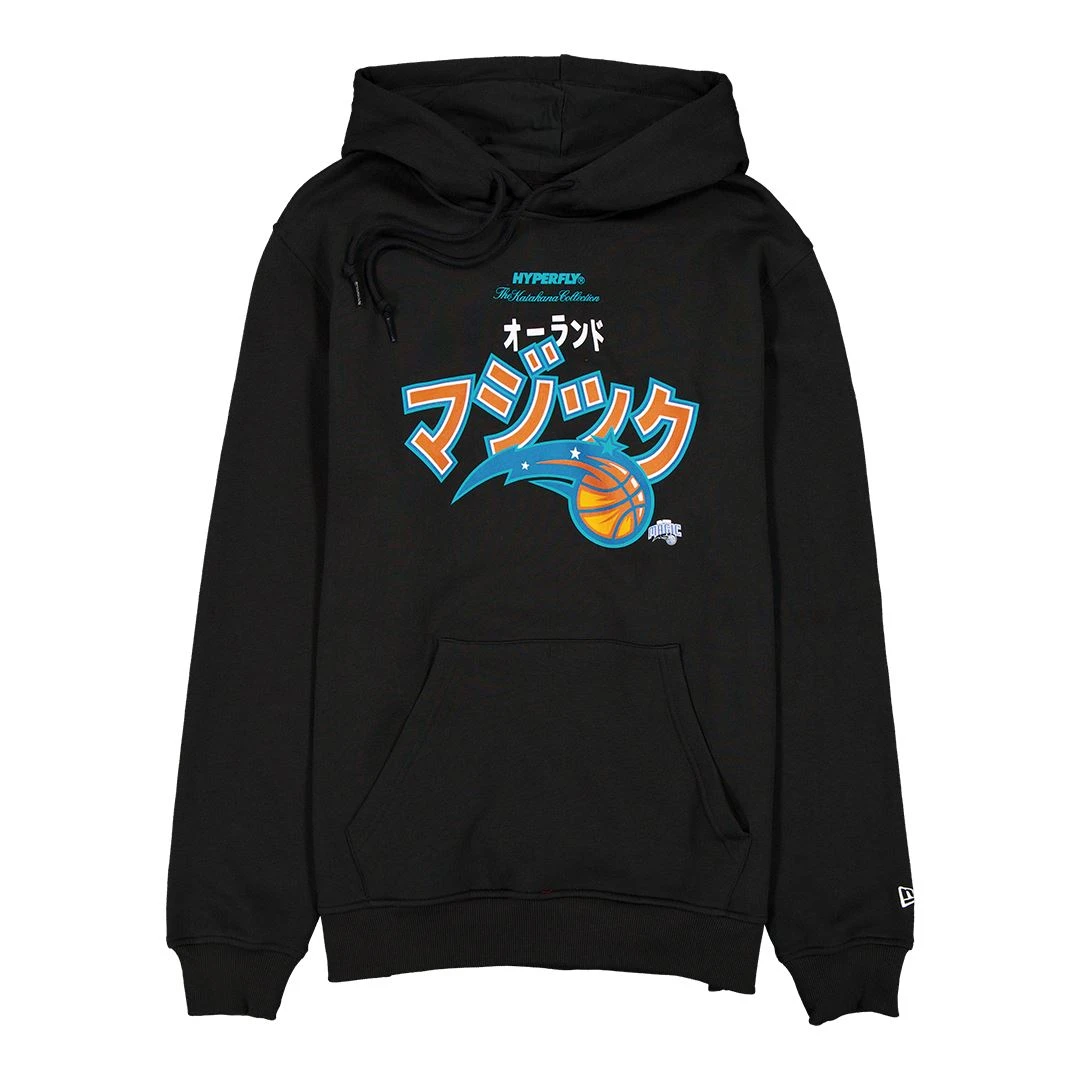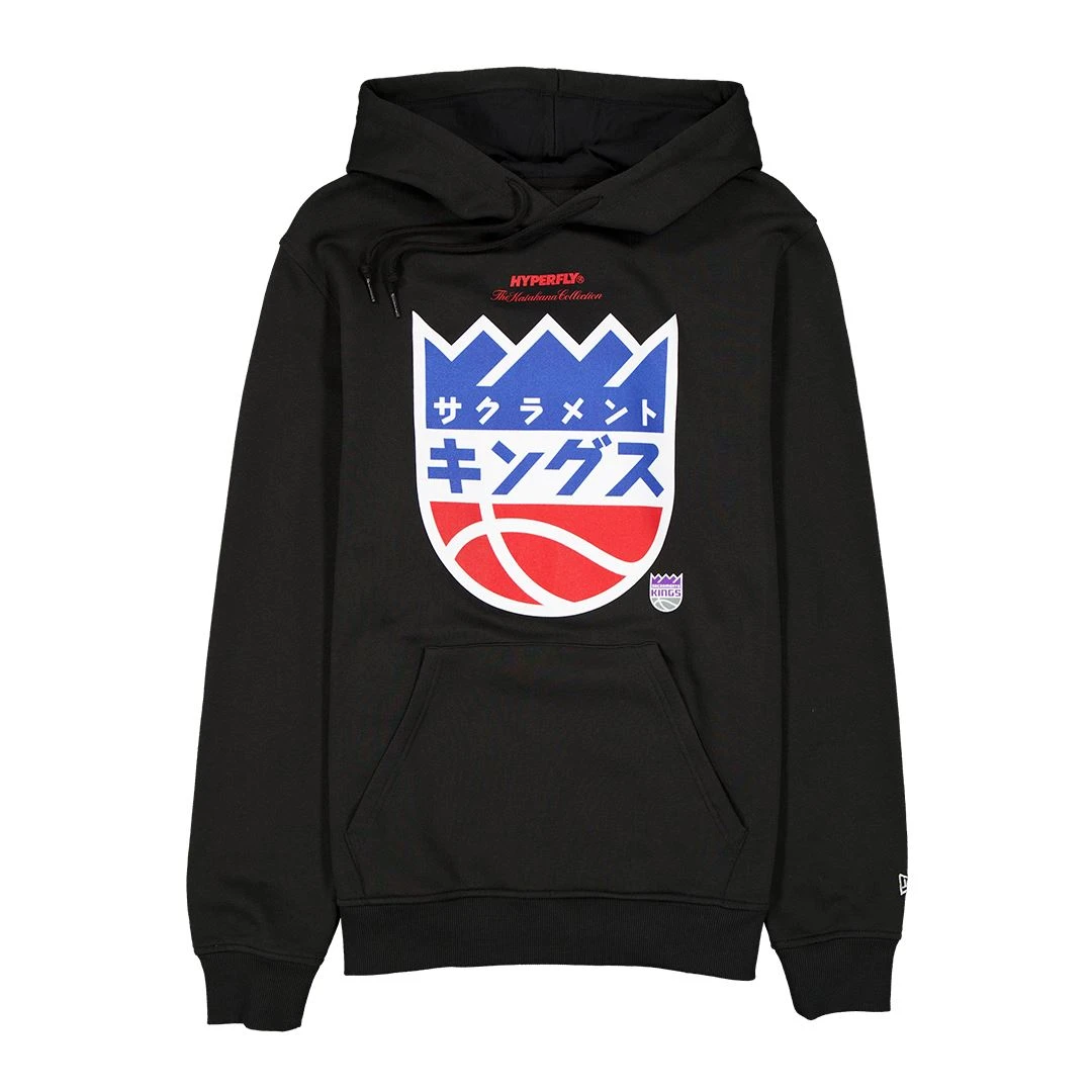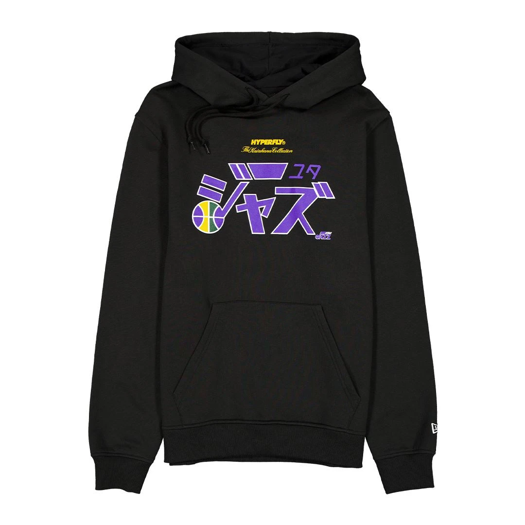 The Hyperfly Katakana x NBA X New Era 2025 All-Star Game Hoodie features a screen-printed Katakana-themed team graphic at the front.