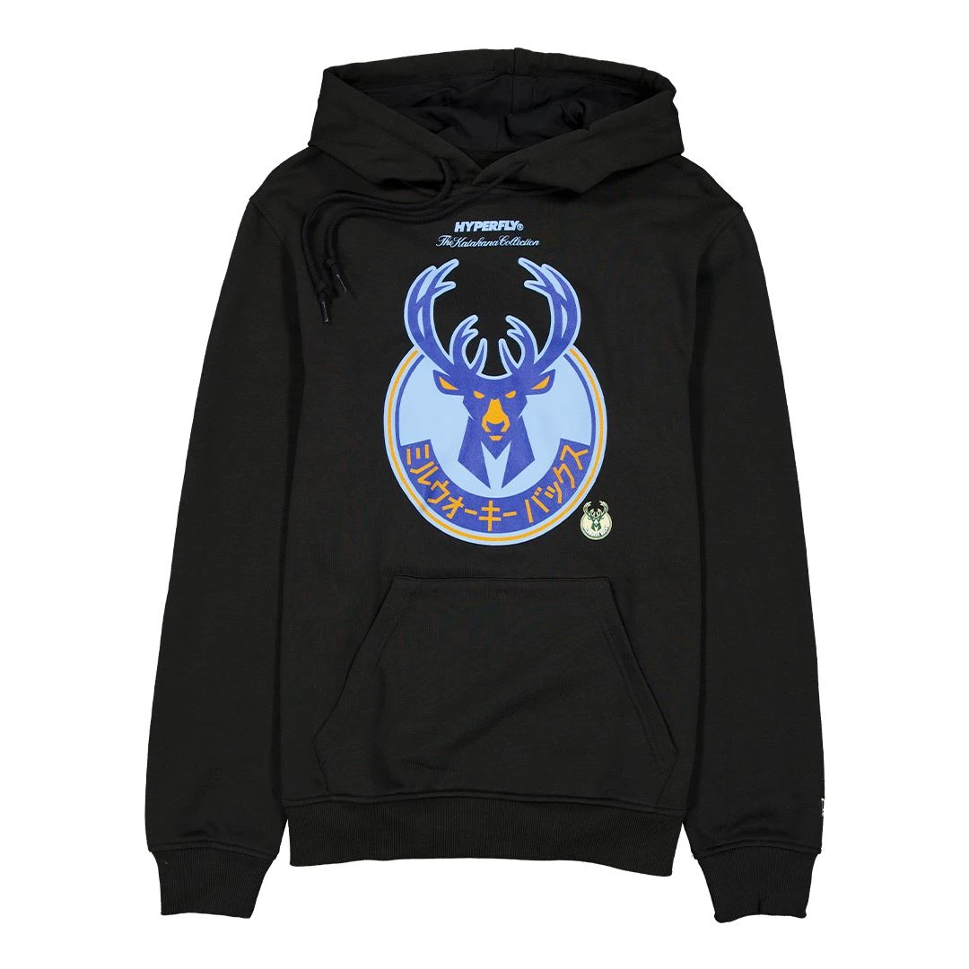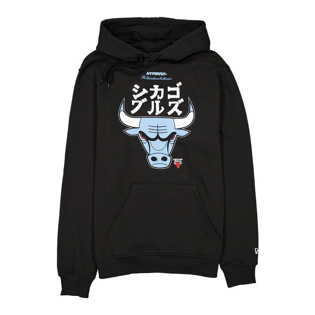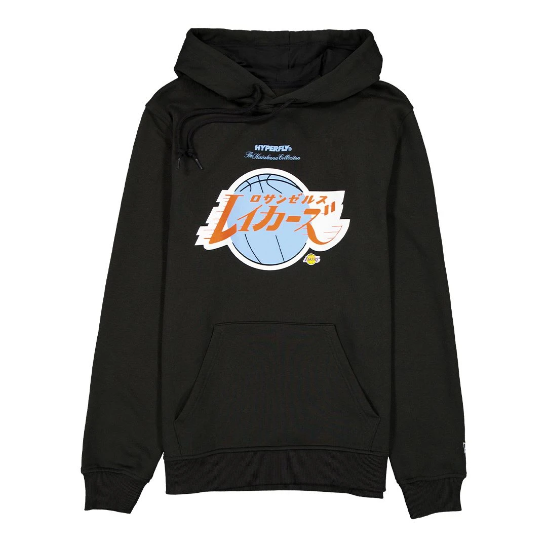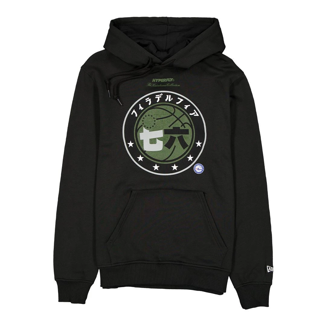 The Hyperfly Katakana x NBA X New Era 2025 All-Star Game Hoodie features a screen-printed Katakana-themed team graphic at the front.